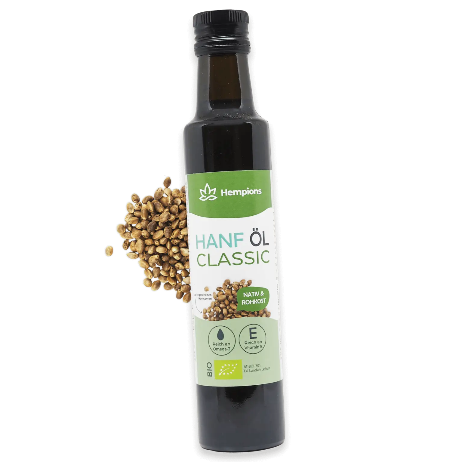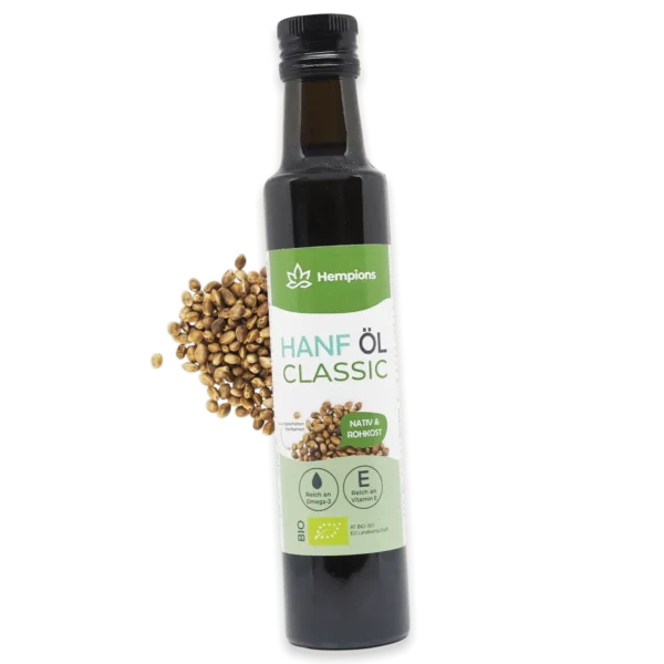 A Hempions prémium kendermag olaj egy finoman diós aromájú, szénavirág-illatú, natív és nyers minőségű kenderolaj, amelyet teljes értékű, hántolatlan bio kendermagokból sajtolnak hidegen. Magas omega-3-tartalma, természetes E-vitaminban való gazdagsága és kivételesen kiegyensúlyozott zsírsavprofilja miatt méltán nevezik a „növényi olajok királyának”.